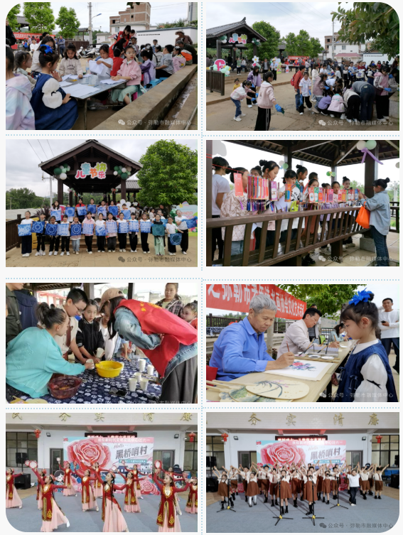 2025年六一儿童节,黑桥哨村以“童心筑梦,快乐成长”为主题举办了丰富多彩的文艺活动。在非遗扎染体验区,老师细致讲解扎染工艺原理、技巧与注意事项并亲自示范、让家长和孩子深入了解。讲解完毕,大家动手体验纯白布料经捆扎、浸染等工序,一幅幅独特美丽的图案就此诞生。趣味游园活动区设置猜灯谜、投壶等多个项目。亲子默契在互动中增进,孩子动手与思维能力也得到锻炼。现场气氛热烈,孩子们玩游戏赢奖品,收获满满的快乐。活动现场,孩子们自编自演的文艺展演精彩上演,节目形式多样、异彩纷呈,他们用表演诠释梦想与热爱,收获观众热烈掌声。